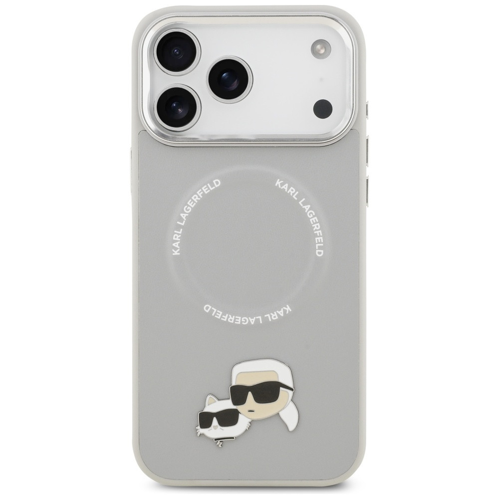 Karl Lagerfeld Karl & Choupette Pins Apple iPhone 17 Pro MagSafe kompatibilis hátlap tok, szürke