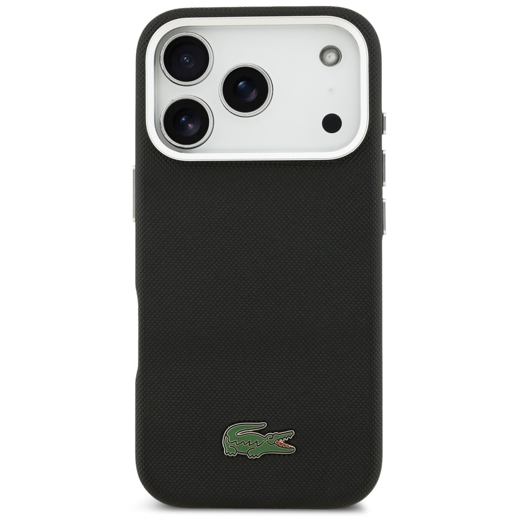 Lacoste Iconic Petit Pique Metal Logo Apple iPhone 17 Pro MagSafe tok kameravédő peremmel, fekete