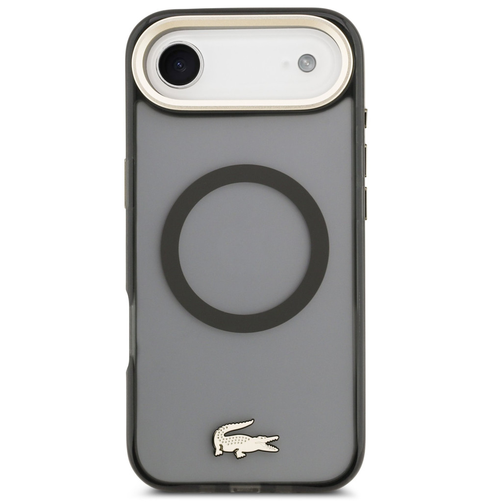 Lacoste PC/TPU Frosted Finish Gold Logo Apple iPhone Air (2025) MagSafe tok kameravédő peremmel, fekete-arany