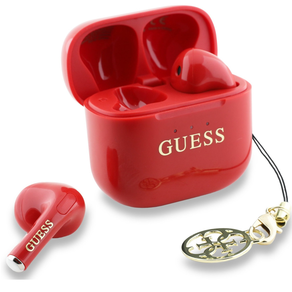 Guess Classic Logo Charm TWS vezeték nélküli fülhallgató, piros