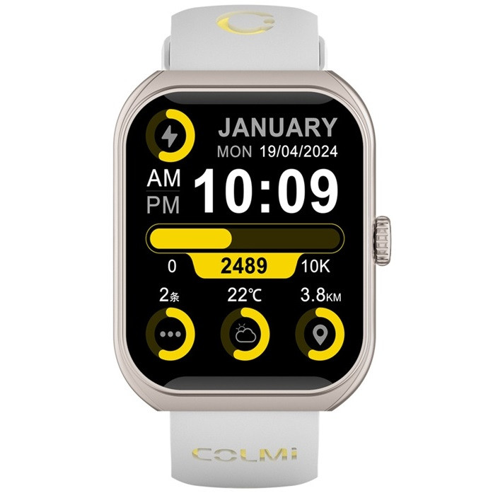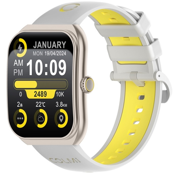 A Colmi P86 egy olyan okosóra, amelyet a kényelem, a mindennapi kényelem és a funkcionalitás jegyében terveztek. Mindössze 40 grammot nyom, így gyakorlatilag észrevehetetlen a csuklón - legyen szó munkáról, edzésről vagy pihenésről. A beépített Always On Display funkcióval a legfontosabb információkhoz a készülék felébresztése nélkül is hozzáférhet, a forgatható oldalsó gomb pedig megkönnyíti a menükben való navigálást.