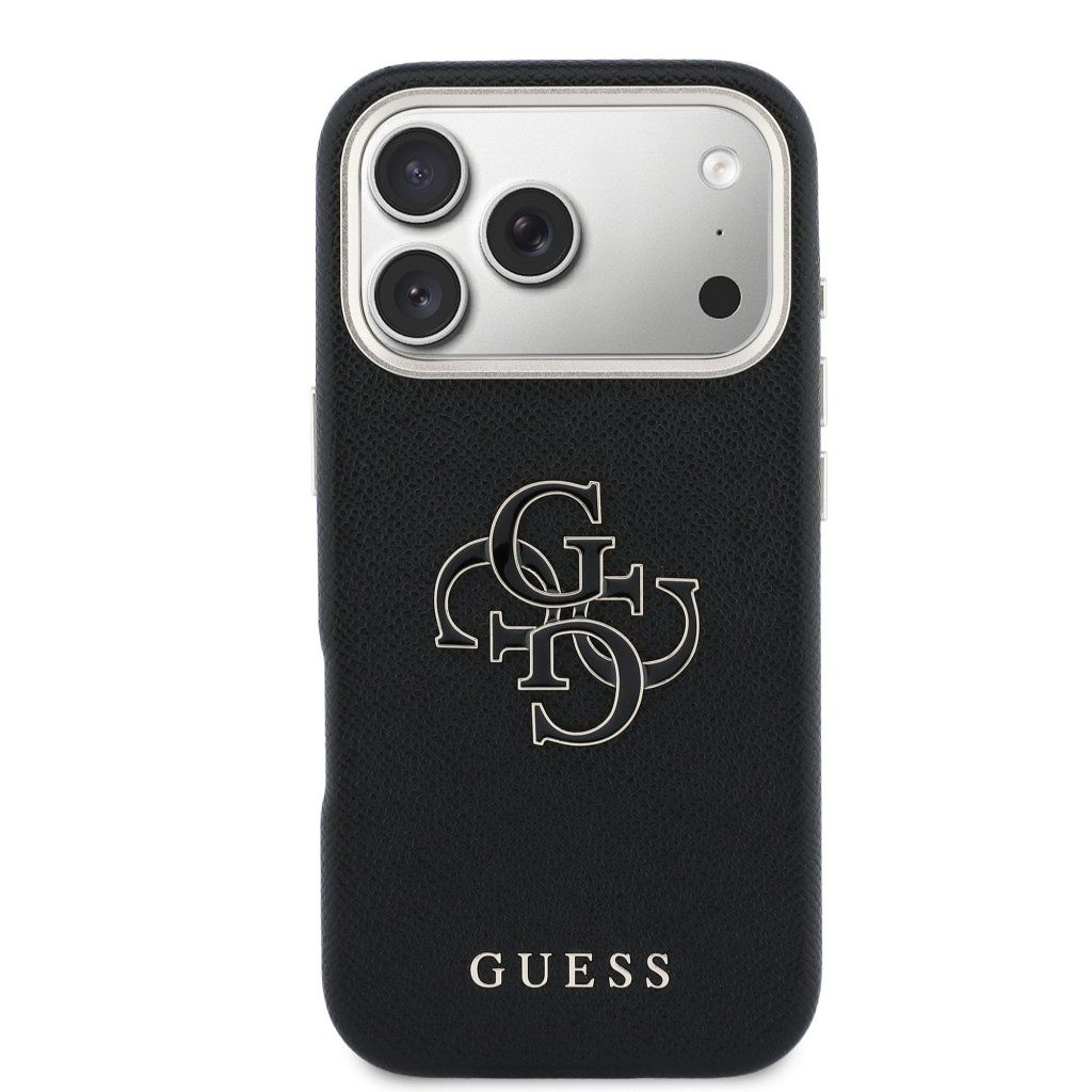 Guess PU Resin Logo Apple iPhone 17 Pro Max tok kameravédő peremmel, fekete-arany