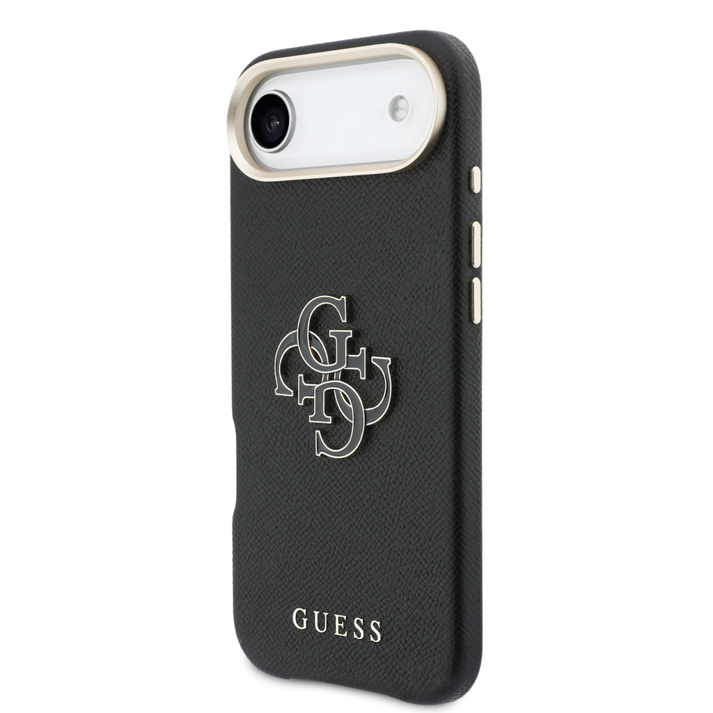 Guess PU Resin Logo Apple iPhone Air (2025) tok kameravédő peremmel, fekete-arany