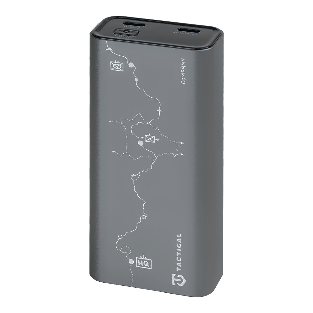 Tactical Squad Company USB-C Power bank / külső akkumulátor kijelzővel, 10000mAh, 30W, térkép minta, ezüst