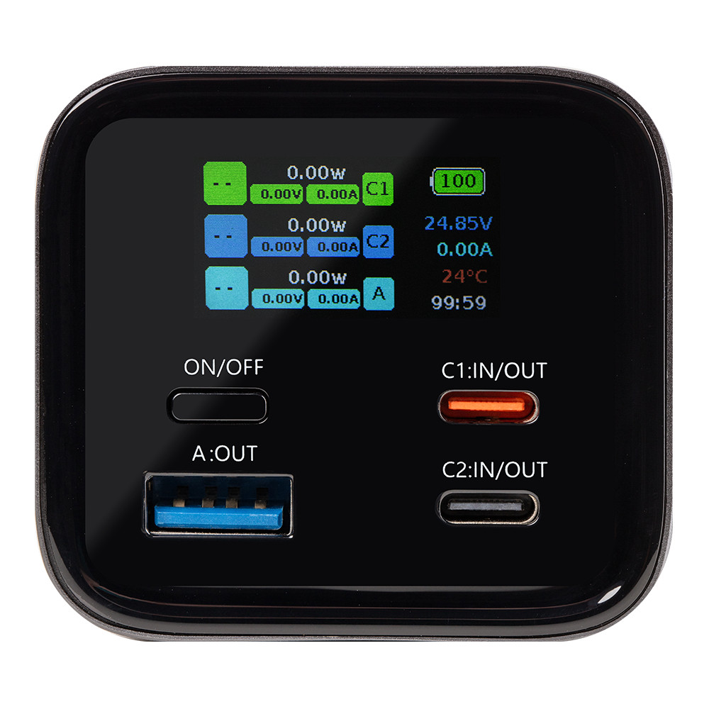 hatékonyság romlása nélkül. 2 x USB-C port a modern nagysebességű töltéshez, 1 x USB-A port a régebbi eszközökhöz.