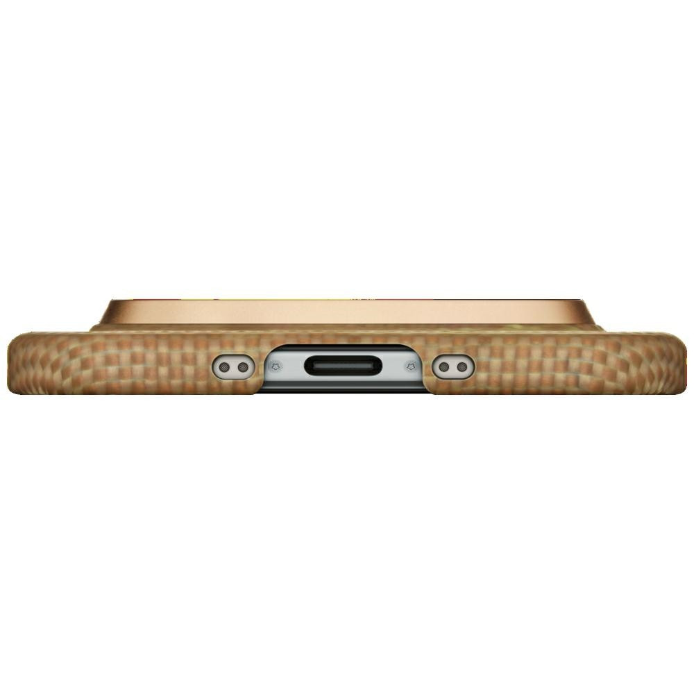 Az Ultra-Slim MagSafe Glints of Gold tok a minimalista dizájnt ötvözi a modern védelemmel. Azok számára készült, akik meg akarják védeni telefonjukat anélkül, hogy feláldoznák annak vékony profilját. Az aramidszálból készült szerkezet biztosítja a könnyedséget, a tartósságot és az elegáns megjelenést. Ez a tok kiemeli az okostelefon természetes formáját, miközben megbízható védelmet nyújt a mindennapi használat során.