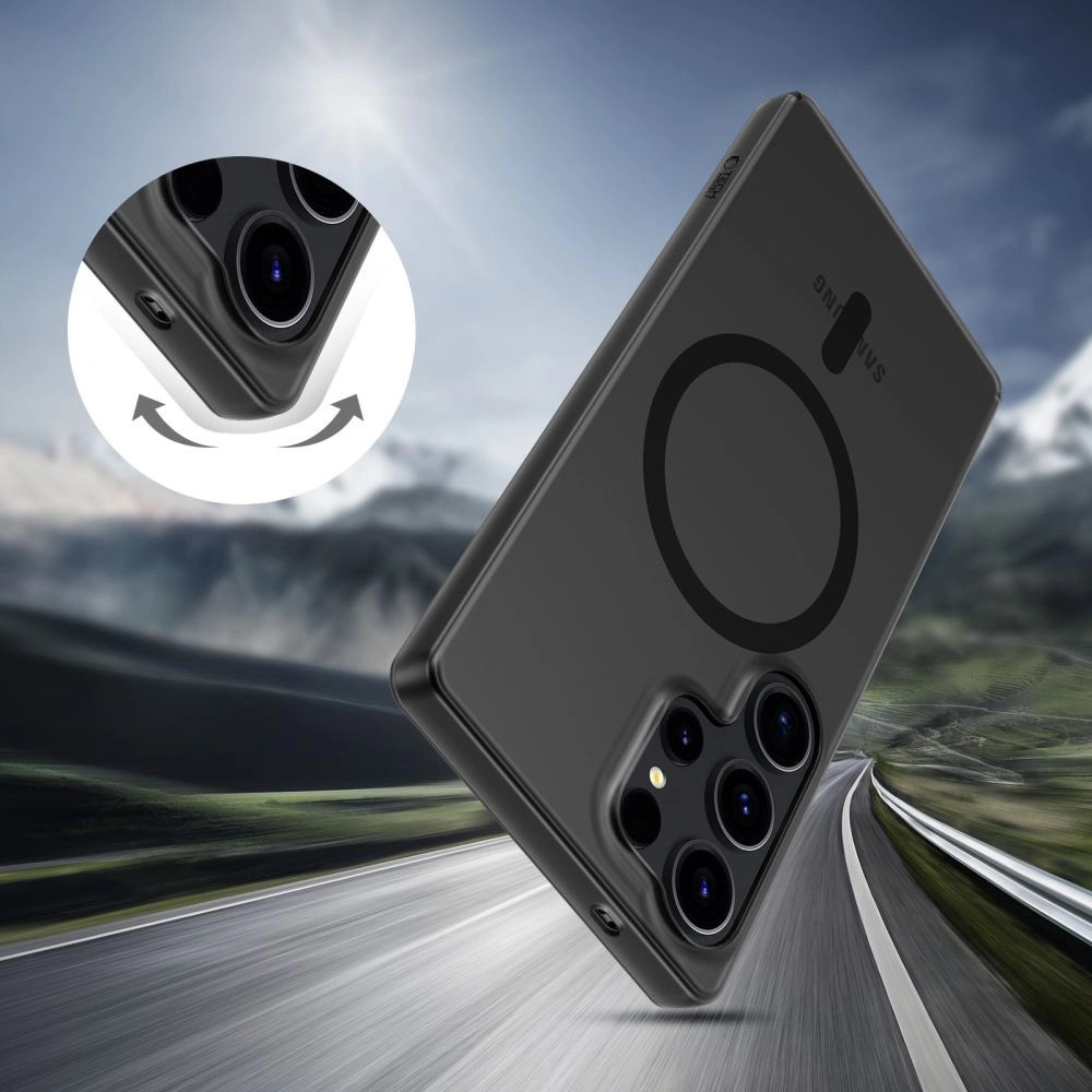 Samsung Galaxy S25 Edge SM-S937, Műanyag hátlap védőtok + szilikon keret, közepesen ütésálló, Magsafe töltővel kompatibilis, Magslim Magsafe, áttetsző/fekete