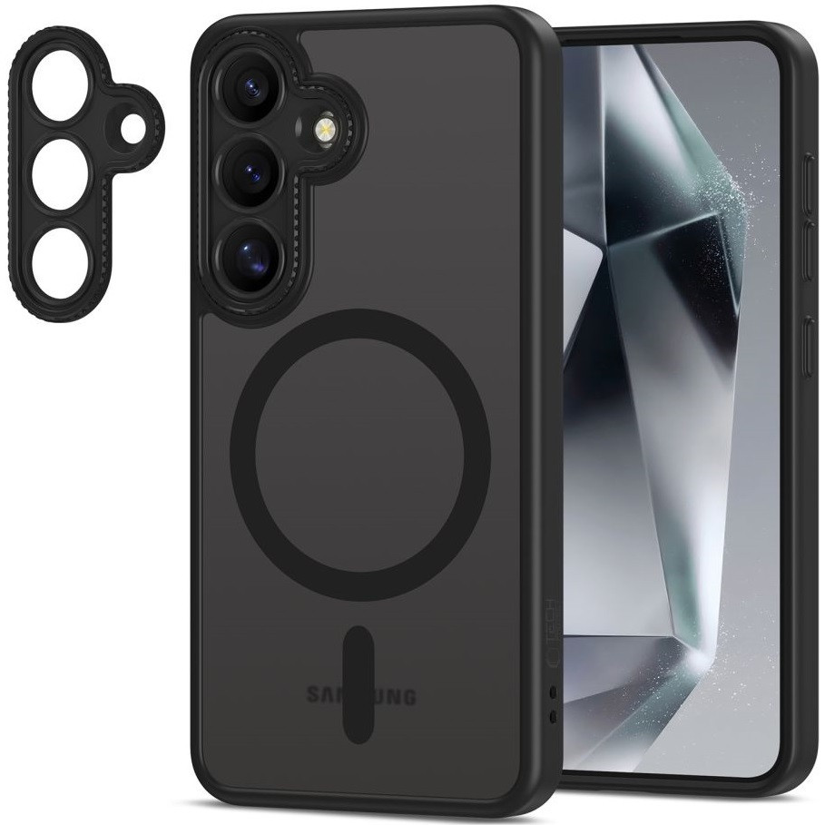 Samsung Galaxy S25 SM-S931, Műanyag hátlap védőtok + szilikon keret, Magsafe töltővel kompatibilis, kameravédő kerettel, Magcam Magsafe, áttetsző/fekete