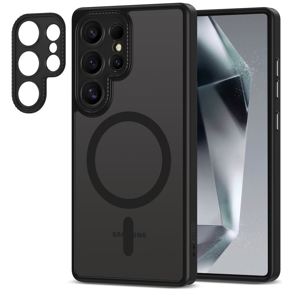 Samsung Galaxy S25 Ultra SM-S938, Műanyag hátlap védőtok + szilikon keret, Magsafe töltővel kompatibilis, kameravédő kerettel, Magcam Magsafe, áttetsző/fekete