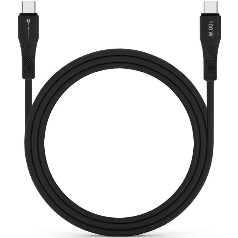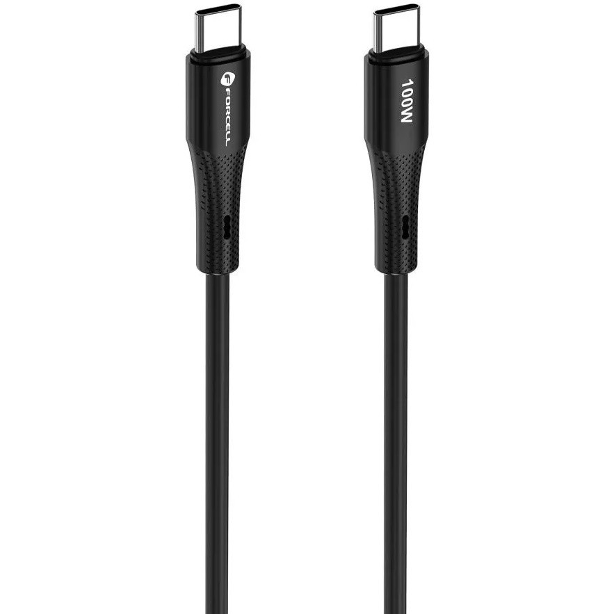USB Type-C töltő- és adatkábel, USB Type-C, 100 cm, 5000 mA, 100W, törésgátlóval, gyorstöltés, PD, QC 4.0, Forcell F-Energy C347, fekete