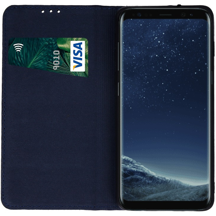 Apple iPhone 16, Oldalra nyíló tok, valódi bőrtok, stand, Smart Pro, sötétkék