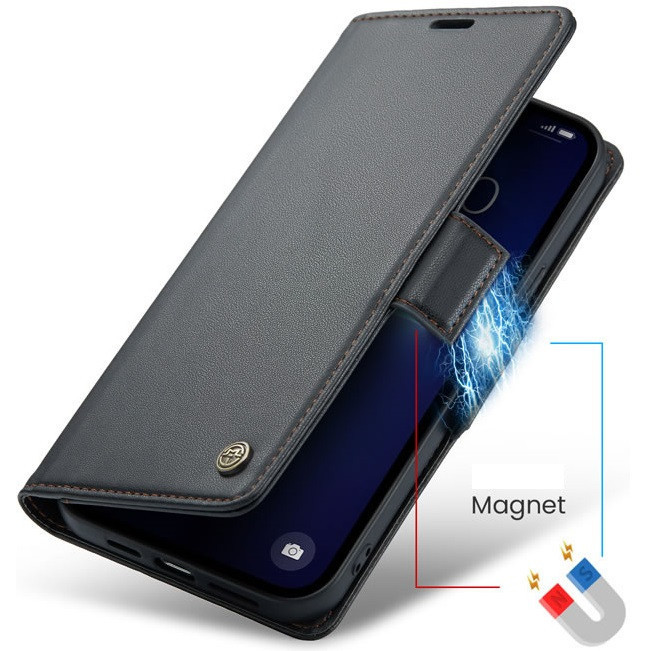 Apple iPhone 15 Pro Max, Oldalra nyíló tok, stand, kártyatartóval, RFID technológiával, Wooze CaseME, fekete