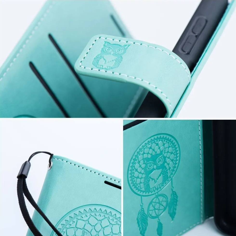 Samsung Galaxy A16 4G / A16 5G SM-A165F / A166B, Oldalra nyíló tok, kártyatartóval, kézpánttal, Álomfogó minta, Mezzo Book, mintás/zöld