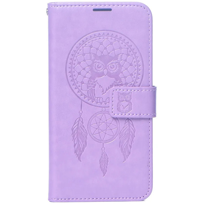 Samsung Galaxy A16 4G / A16 5G SM-A165F / A166B, Oldalra nyíló tok, kártyatartóval, kézpánttal, Álomfogó minta, Mezzo Book, mintás/lila