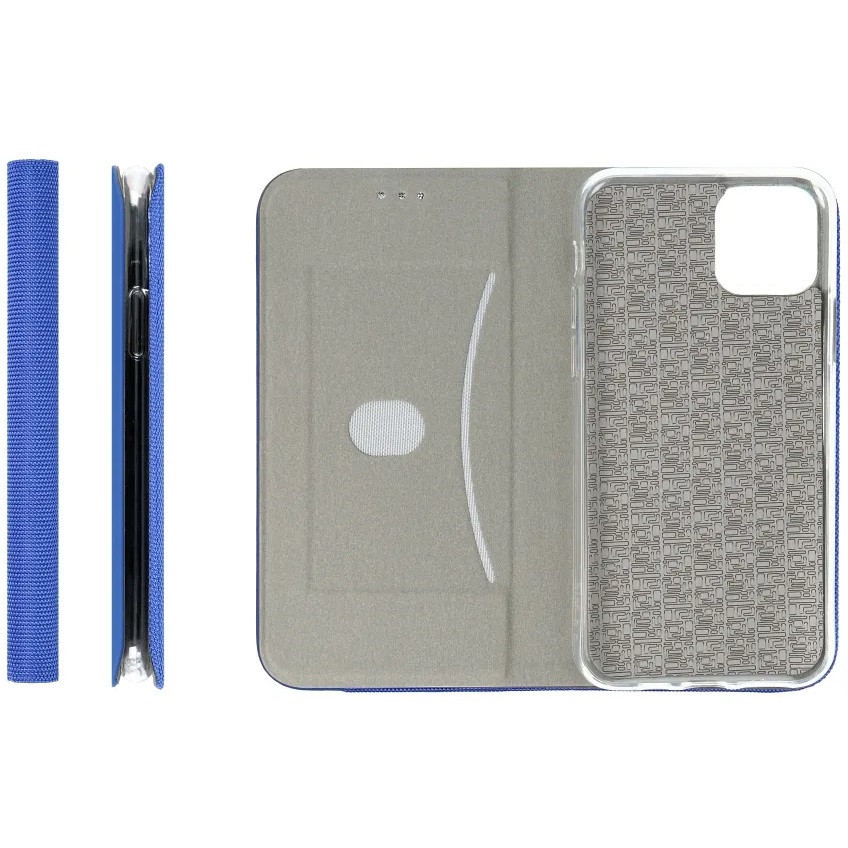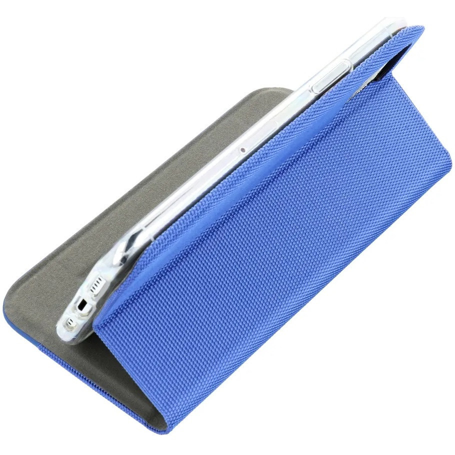 Samsung Galaxy A16 4G / A16 5G SM-A165F / A166B, Oldalra nyíló tok, stand, kártyatartóval, textil minta, Sensitive Book, kék
