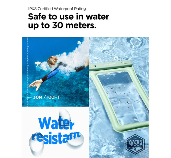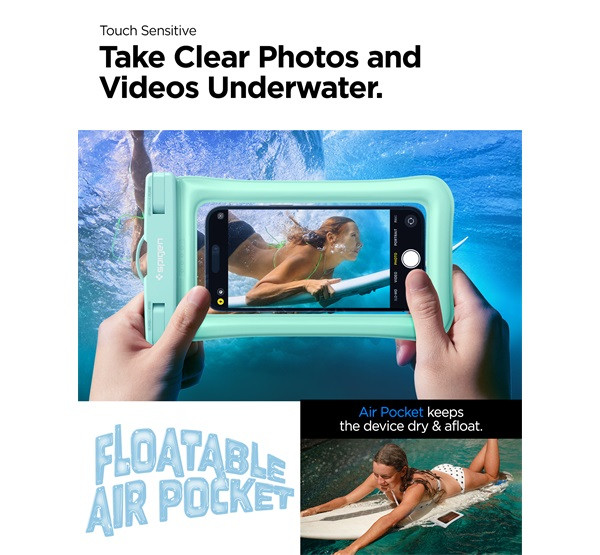 Spigen Aqua Shield A610 univerzális lebegő vízálló tok, menta