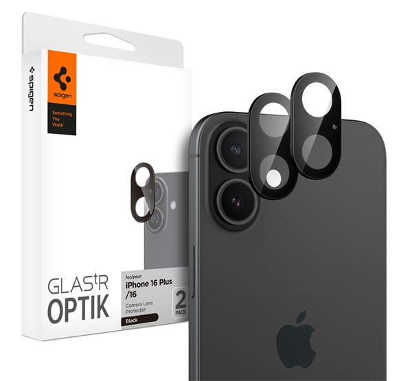 Spigen Glas.tR Optik Apple iPhone 16 Plus / iPhone 16 Tempered kameravédő fólia, fekete (2db)