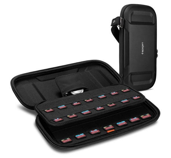 Spigen Rugged Armor Pro Nintendo Switch játékkártya tároló tok, Airtag tartóval, fekete