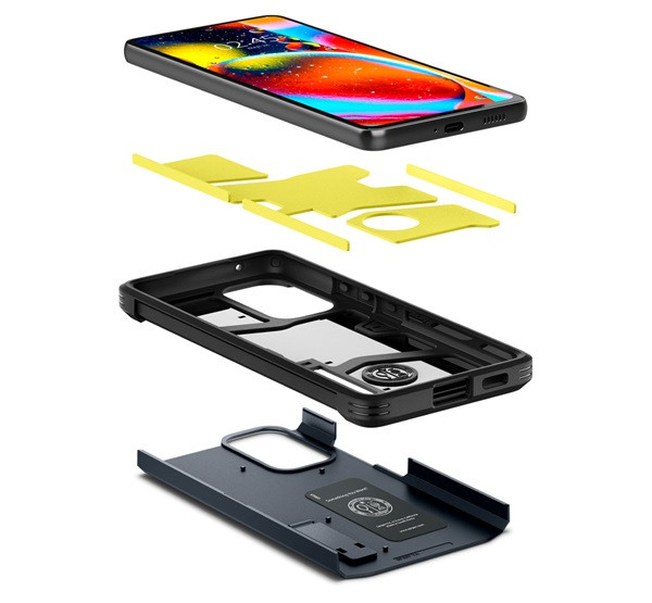 A Spigen Tough Armor egy strapabíró mobiltelefon tok, amely erős védelmet nyújt a mindennapi kopások, ütések és a kisebb nedvesség ellen. A tok dupla rétegű kialakítással rendelkezik, beleértve egy belső TPU réteget az ütések elnyelésére és egy külső, merev polikarbonát réteget a készülék körüli védelemért. Emellett beépített légpárnákkal és emelt keretekkel rendelkezik az extra védelem érdekében. Ergonomikus designja kényelmes fogást biztosít, és stílusos megjelenést kölcsönöz a készüléknek. A Spigen Tough Armor ideális választás aktív életmódot élők és a készüléküket biztonságosan védeni kívánók számára.