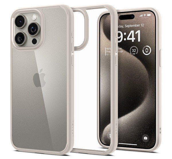 Spigen Ultra Hybrid Apple iPhone 15 Pro Max tok, Sand Beige, bézs, átlátszó