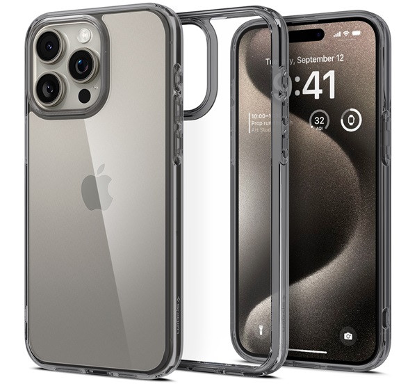 Spigen Ultra Hybrid Apple iPhone 15 Pro Max tok, Space Crystal, átlátszó-szürke, fekete-átlátszó