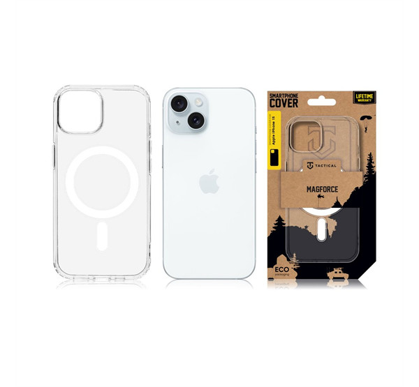 A Tactical MagForce egy vékony, átlátszó PC/TPU hátlapvédő, amely tökéletesen illeszkedik a telefonra. A tok két anyagból áll: a hátoldalon erős polikarbonát található, az oldalaknál pedig rugalmas TPU anyag. Különlegessége, hogy egy erős mágnessel rendelkezik, amely kompatibilis az Apple MagSafe kiegészítőkkel. A polikarbonát anyagnak köszönhetően a tok nem sárgul be a telefon töltése közben keletkező hő miatt. A tok teljesen védi a telefon hátulját, oldalait és sarkait, biztosítva a védelmet az esések és a mindennapi használat során is. Nagy előnye, hogy pontosan illeszkedik a készülékhez, miközben minden gomb és csatlakozó könnyen hozzáférhető marad. Emellett a telefon legsebezhetőbb pontjait, például a sarkakat különösen védi. Az enyhén megemelt szélek pedig megakadályozzák, hogy a kijelző megsérüljön, amikor a készüléket képernyővel lefelé helyezzük le. A Tactical márka szokásához híven a termék csomagolása teljes mértékben újrahasznosított papírból készült.