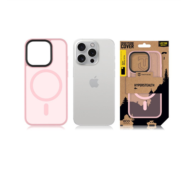 Tactical MagForce Hyperstealth iPhone 15 Pro hátlap tok, áttetsző/rózsaszín