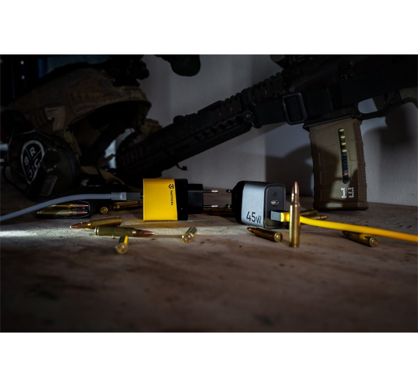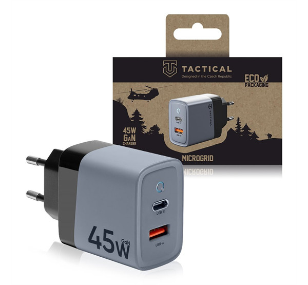 Tactical Microgrid töltő adapter USB-A+ USB-C, GaN, 45W, szürke