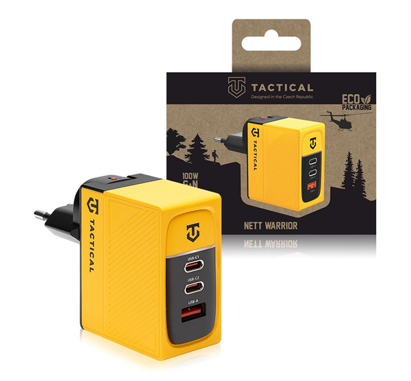 Tactical Nett Warrior gyorstöltő adapter USB-A+ 2 USB-C, 100W, sárga