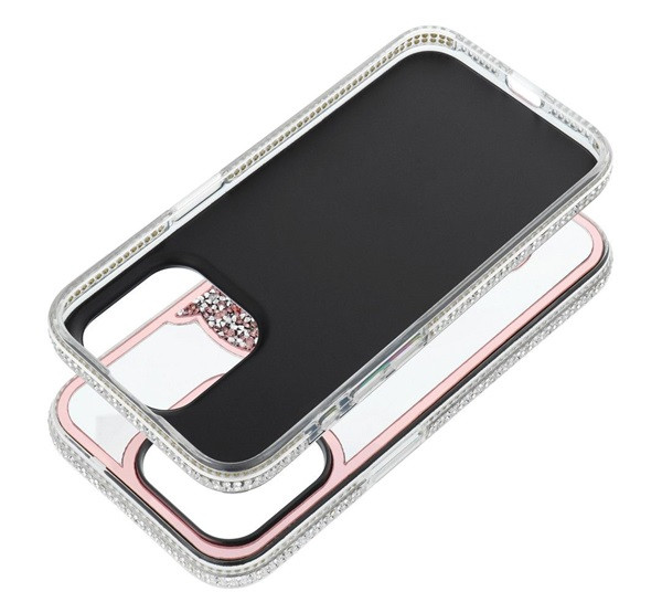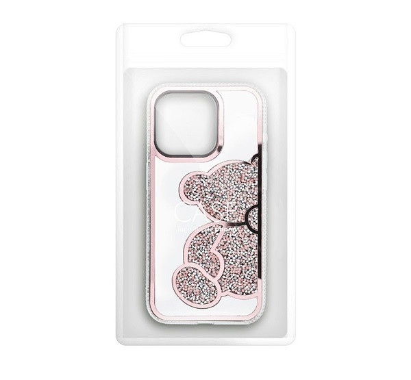 Teddy Bear iPhone 12 / 12 Pro csillogó köves tok, rózsaszín