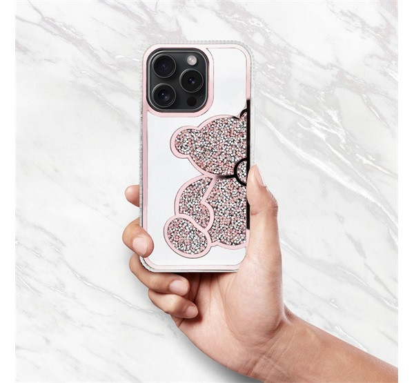 A Teddy Bear egy stílusos és funkcionális tok, amely jellegzetes, csillogó mackómintával, emelt élekkel rendelkezik. Műanyagból készült.