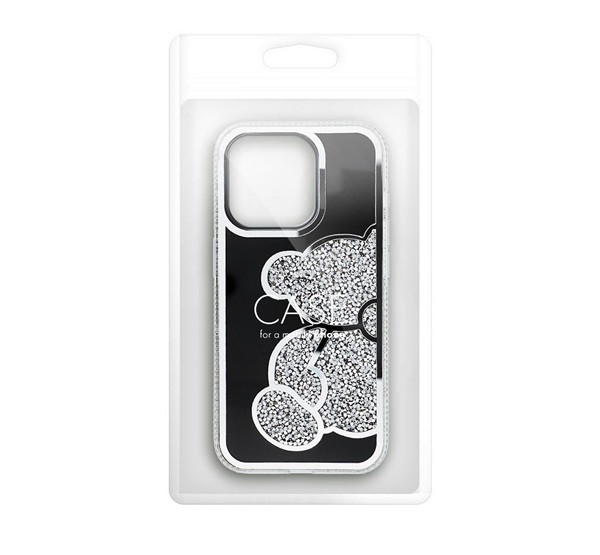 Teddy Bear iPhone 16 Pro csillogó köves tok, ezüst