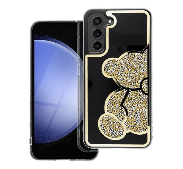 Teddy Bear Samsung Galaxy S24 csillogó köves tok, arany