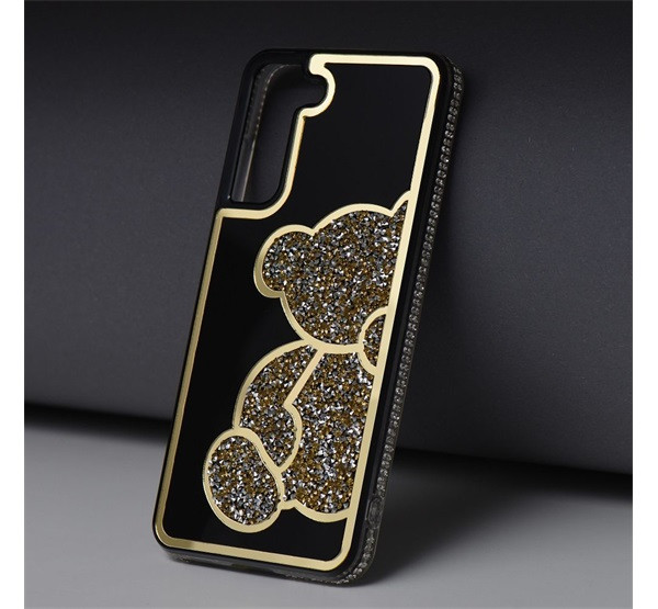 Teddy Bear Samsung Galaxy S24 Ultra csillogó köves tok, arany