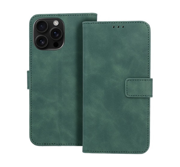 Tender Book iPhone 16 Pro Max flip/oldalra nyíló műbőr tok kártyatartó résszel, zöld