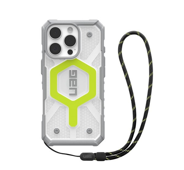 UAG Pathfinder iPhone 16 Pro Clear Magsafe tok, Active Neon Lanyard