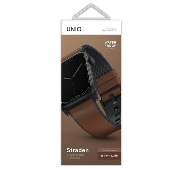 A Uniq Straden egy prémium minőségű, vízálló bőr szíj Apple Watch számára, amely rozsdamentes acél kiegészítőkkel rendelkezik. A szíj ergonomikus kialakítása és textúrált szilikon belső bélése kiváló szellőzést és kényelmet biztosít. A hosszállítási kivágások lehetővé teszik a tökéletes illeszkedést.
